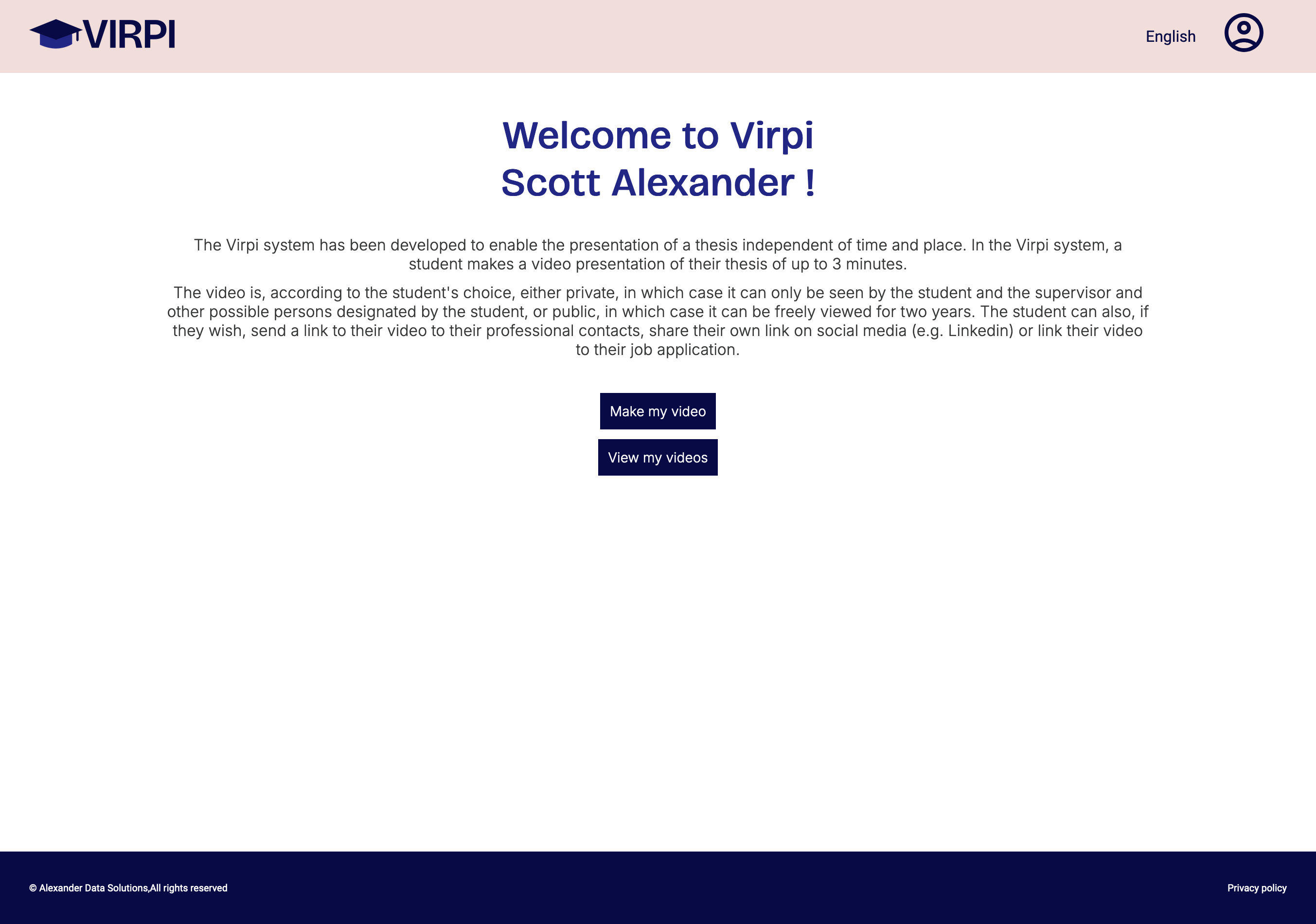 Virpi is a SaaS designed for universities to provide their students with a platform to record, store, and present their theses and other school work. With Virpi, students can easily create professional virtual pitches that highlight their academic accomplishments.